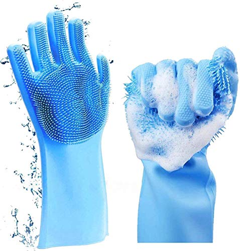 Louis Donné - قفازات منزلية قابلة لاعادة الاستخدام من السيليكون بشعيرات فرشاة سحرية لحمام الحيوانات الأليفة وتنظيف الأطباق وغسيل السيارات من لويس دون، أزرق
