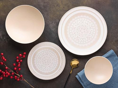 Lotus - طقم عشاء بورسلين مع كوب من لوتس، موديل 1003603، متعدد الألوان، طقم من 24 قطعة