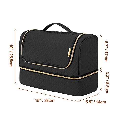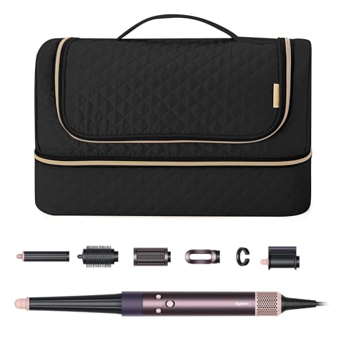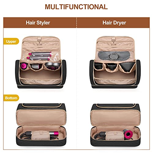 LOVACA - حقيبة سفر مزدوجة الطبقات من لوفاكا متوافقة مع دايسون اير راب متعدد المصففات، منظم ادوات الشعر المحمول مع خطاف تعليق، شنطة تخزين لتجعيد الشعر والمرفقات، للاستخدام المنزلي والسفر للنساء (اسود)