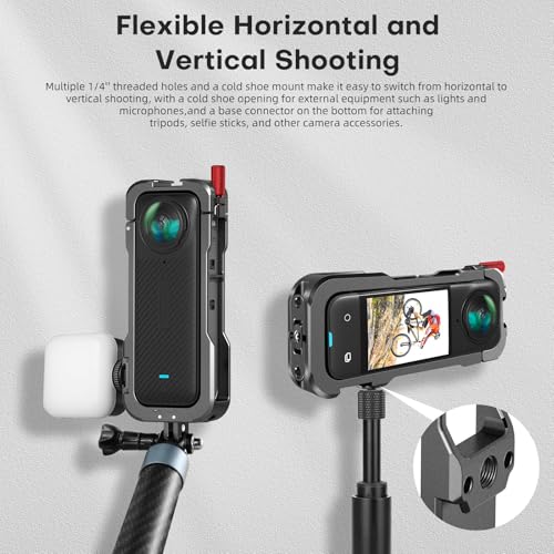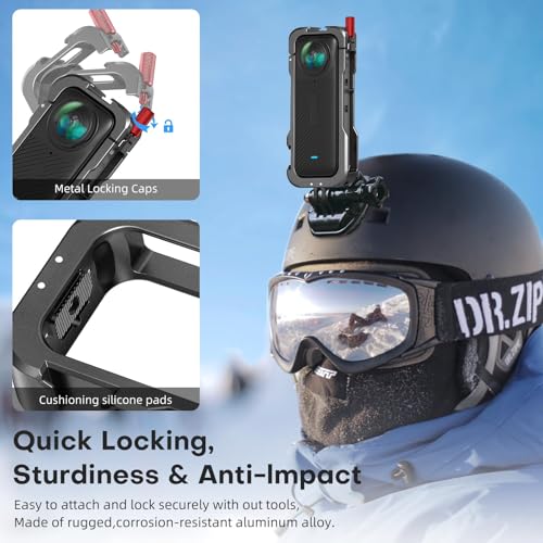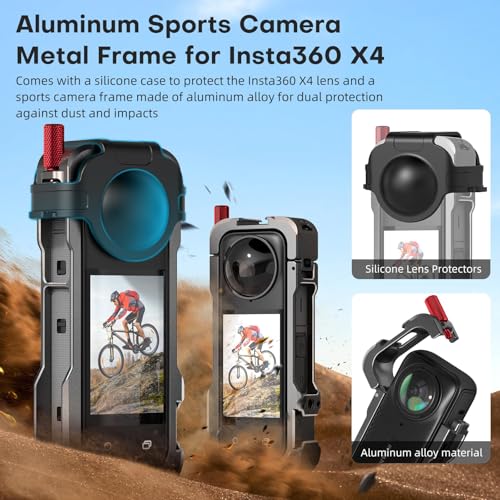 LOVACA - حافظة حماية لانظمة انستا 360 X4 من لوفاكا باطار متعدد الاستخدامات من الالومنيوم مع غطاء عدسة سيليكون وواقيات زجاجية، حامل يثبت على البارد وخيوط واصابع قابلة للطي، قفص مدونة فيديو واقي لانستا 360 اكس 4