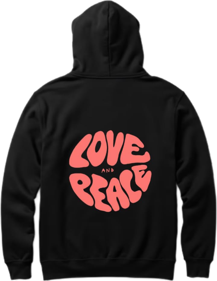 Generic - سويت شيرت بغطاء للرأس مطبوع عليه Love and Peace أسود