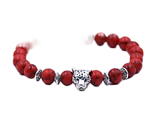 Generic - سوار الحب من الحجر الرخامي الاحمر مع رأس النمر الفضي، للجنسين