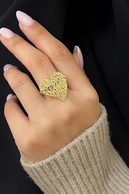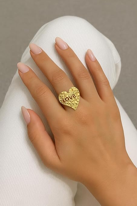 Generic - خاتم نسائي بتصميم الحب – يمنح لمسة عصرية وجذابة مناف اند اتش، كود 0108، مصنوع من الفولاذ المقاوم للصدأ، باللون الذهبي