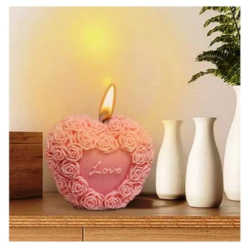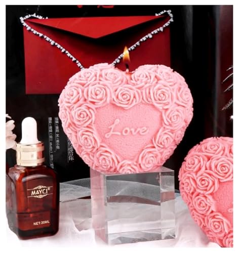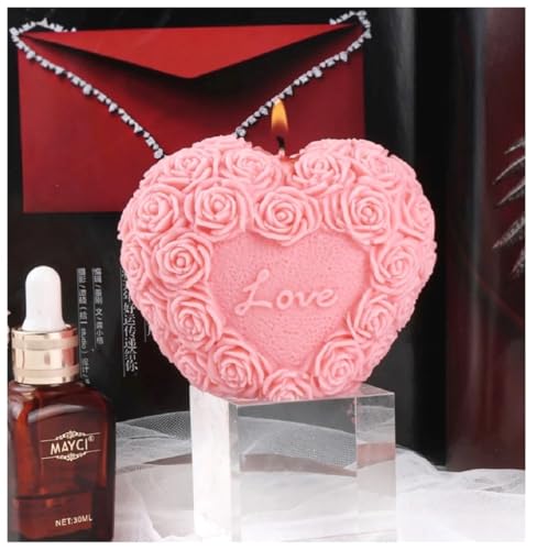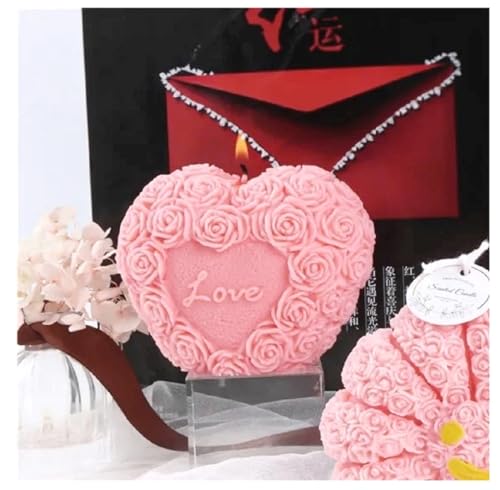 Generic - شمعة love قلب معطرة على شكل قلب وردة زهرة الفاوانيا ب للنساء والأصدقاء وزملاء الدراسة، مصنوع من شمع طبيعي100% لتزيين المنزل، شموع وغرفة النوم والحمام، مجموعة ديكور تجريدي جمالي (سيموني) (زهري)