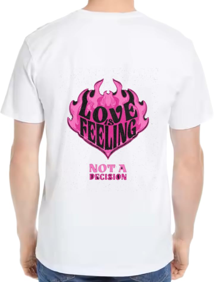 Generic - تي شيرت مطبوع بعبارة LOVE IS A FEELING NOT A DECISION أبيض