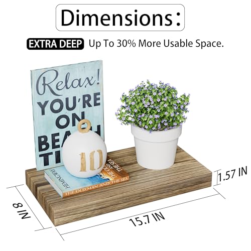 Love-KNPTUS - ارفف عائمة عميقة 8 انش للجدار من لوف كيه ان بي تي يو اس، رف خشبي صلب 16 انش، ارفف حمام ريفية مثبتة على الحائط، رف حائط مع دعامات غير مرئية لغرفة المعيشة وغرفة النوم والمطبخ