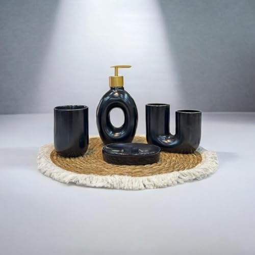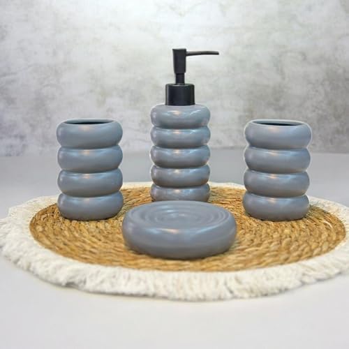 - طقم حمام متكامل: يتضمن الطقم 4 قطع أساسية وهي موزع الصابون السائل، وكوب الأسنان، وحامل الصابون، وكوب متعدد الاستخدامات