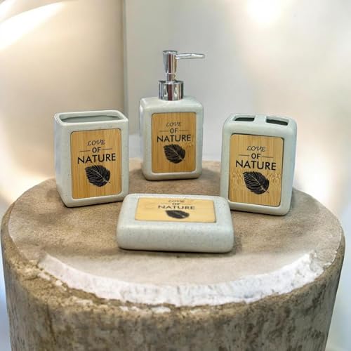 Generic - طقم حمام 4 قطع، موزع صابون سائل وحامل فرشاة أسنان وطبق صابون وكوب، تصميم Love of Nature