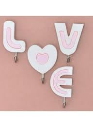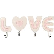 Generic - علاقات حائط على شكل كلمة LOVE، 4 قطع، وردي فاتح وأبيض، بلاستيك ومعدن، تصميم عصري رومانسي، خطافات تخزين للحائط