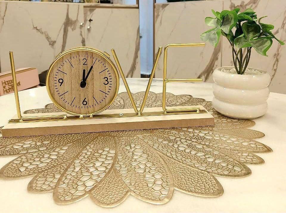 Generic - لوف مع ساعة بقاعدة خشبية من فلامينغو لديكور المنزل والمكتب ورمضان والكريسماس ورأس السنة الجديدة - ذهبي