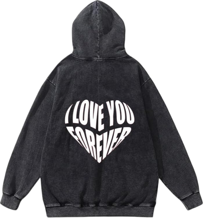 Generic - سويت شيرت بغطاء للرأس مطبوع عليه عبارة LOVE YOU FOREVER VaIentine CoupIe مغسول 29