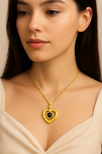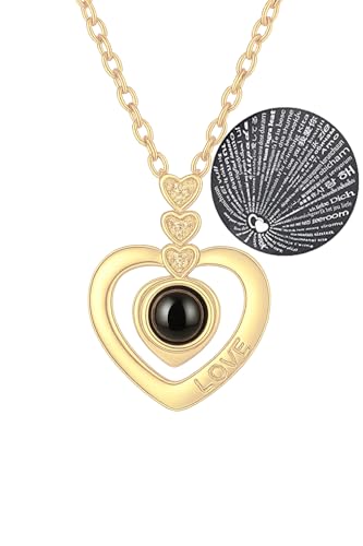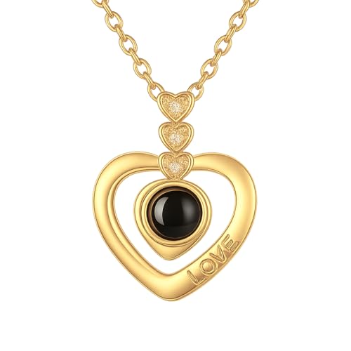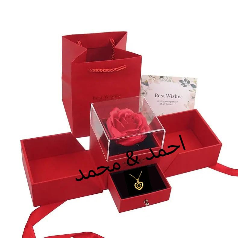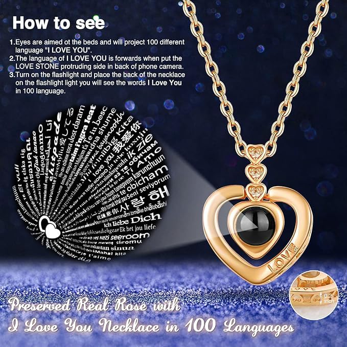 Generic - سلسلة بحبك بـ100 لغة – على شكل قلب - هدية رومانسية فاخرة محفورة بكلمة LOVE ومظهر أنيق ذهبي"مع صندوق المجوهرات الورده الابديه - من أحمد & محمد