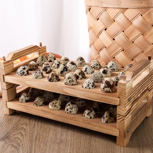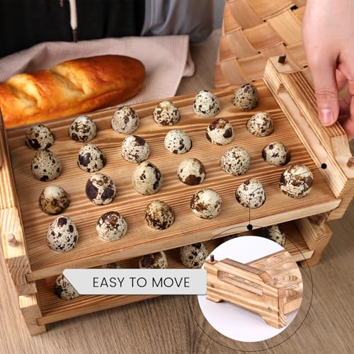 LOVEINUSA - حامل بيض السمان من الخشب من لوفيناسيا، صواني تخزين بيض السمان توضع فوق سطح الطاولة، رف حاويات بيض السمان قابل للتكديس بـ 24 فتحة، طقم من قطعتين