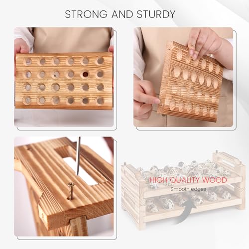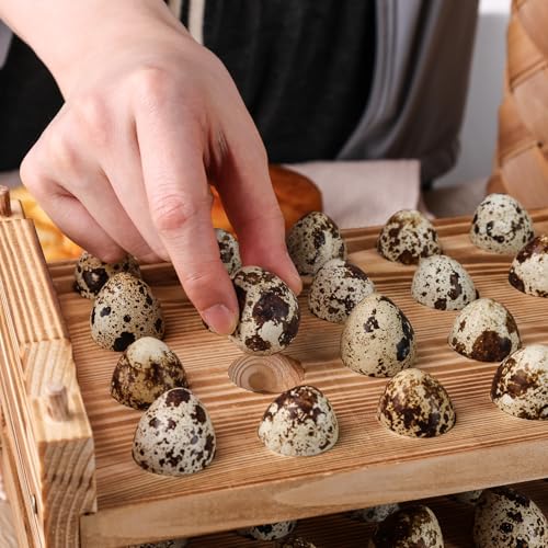 - تصميم مثالي - صُنِع حامل بيض السمان الخشبي الخاص بنا بفتحات دائرية ومُجوَّفة، مما يوفر حماية شاملة وتهوية لحفظ بيض السمان الطازج لفترة أطول. يُعد حامل بيض السمان القابل للتكديس هذا الخيار الأمثل لكل عائلة، حيث يضمن بقاء بيض السمان طازجًا ومحميًا.