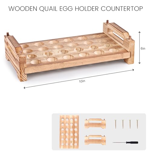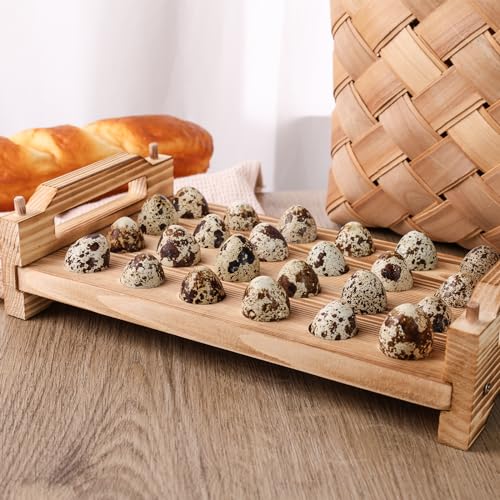 LOVEINUSA - لوف اين يو اس ايه حامل بيض السمان الخشبي، رف حاوية بيض السمان، صينية تخزين بيض السمان قابلة للتكديس مع 24 فتحة
