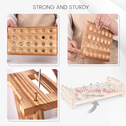 - تصميم مثالي - مصنوع من بقع دائرية ومجوفة، يوفر حامل بيض السمان الخشبي الخاص بنا حماية شاملة وتهوية للحفاظ على بيض السمان الطازج لفترة أطول. حامل بيض السمان القابل للتكديس هذا هو الخيار الأمثل لكل عائلة، مما يضمن بقاء بيض السمان طازجًا ومحميًا.