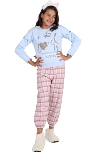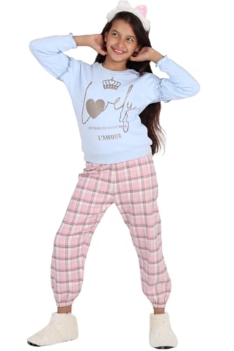 Choice N.C - بيجامة كاروه للبنات من لوفلي بتصميم كاجوال ناعم وانيق، خامة مريحة عالية الجودة بمظهر دافئ للمنزل كود 537 (لوبني، 8 سنوات)