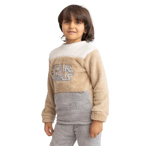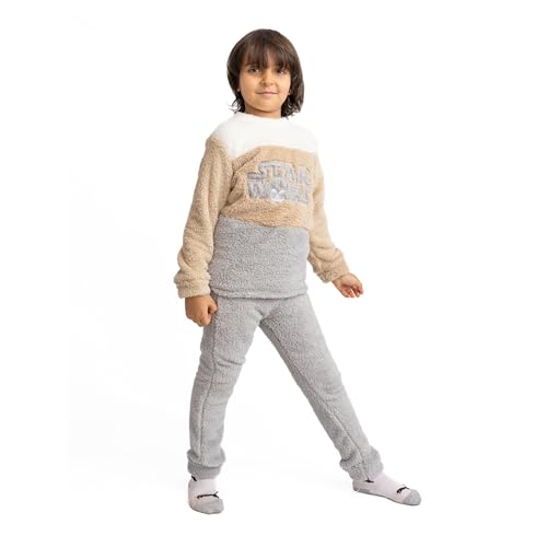 lovely land - طقم بيجامة للأولاد مكون من قميص بيج مع زينة على الصدر بنمط حرب النجوم وبنطلون رمادي من لوفلي لاند (عبوة من قطعة واحدة)