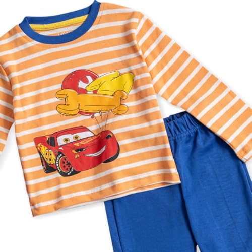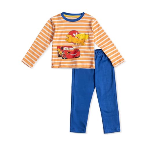 lovely land - طقم بيجامة مكون من قميص برتقالي مع طباعة على الصدر وبنطلون ازرق للاولاد (عبوة من قطعة واحدة)