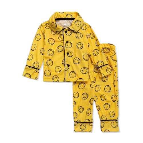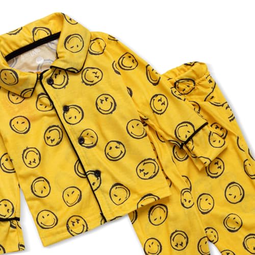 lovely land - طقم بيجامة مكون من قميص بازرار وطباعة كاملة وسروال اصفر للاولاد (عبوة من قطعة واحدة)
