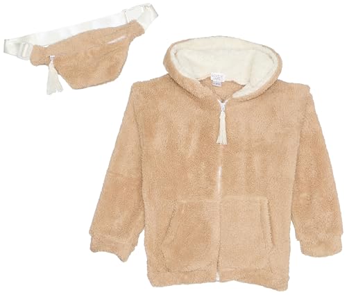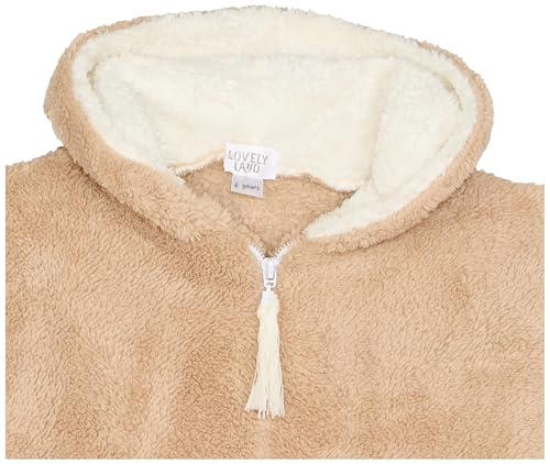 lovely land - جاكيت بغطاء للرأس من الفرو بلون بيج مع شنطة بلون بيج للبنات من لوفلي لاند (قطعتان)