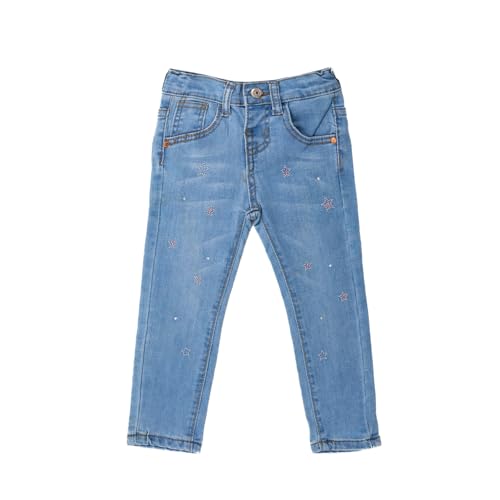 lovely land - بنطلون جينز كاجوال للبنات بلون أزرق فاتح مع خياطة على شكل نجوم من لوفلي لاند