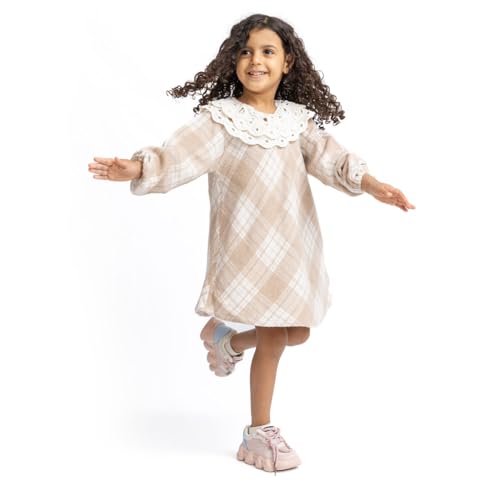 lovely land - فستان للبنات بلون ابيض وبيج مع زينة