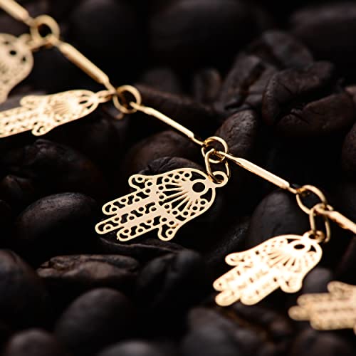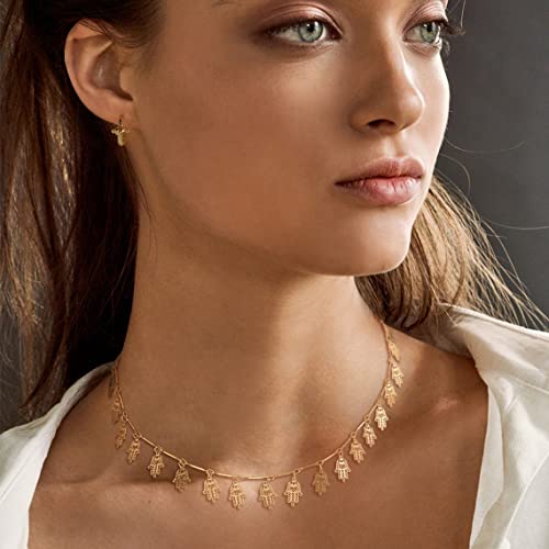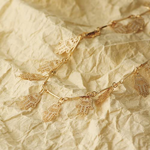 LOYATA - طوق ضيق مطلي بالذهب عيار 14K من لوياتا تصميم على الطراز البوهيمي بالترتر وعملات معدنية رقيقة وكف ازرق حجر الزركونيا للنساء نحاس اصفر بدون أحجار كريمة