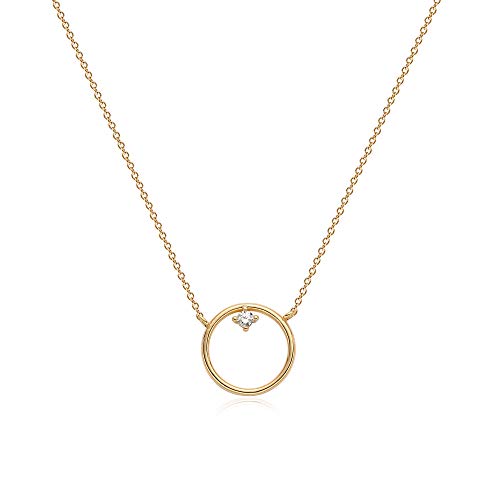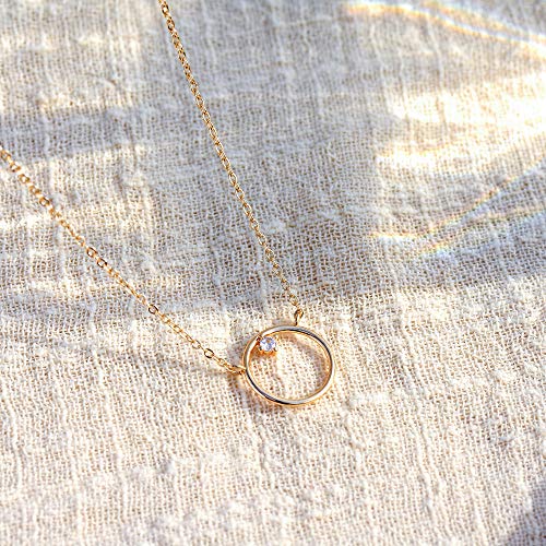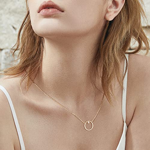 LOYATA - عقد بقلادة على شكل قمر، عقد بقلادة على شكل عملة معدنية مطلية بالذهب عيار 14 قيراط على شكل قمر جديد وهلال وقمر كامل ودائرة مفتوحة مطروقة للنساء
