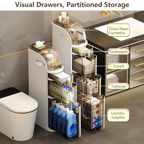 Lozovin - منظم تريندستينج صغير للأماكن الضيقة من لوزوفين خزانة لأرضية الحمام مع أدراج وحامل مناديل حامل ورق تواليت رفيع قائم بذاته أنيق متعدد الوظائف لتوفير المساحة