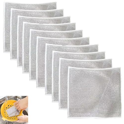 - قطع غسيل اطباق سلكية متعددة الاغراض من ال بي ام اكس واي دبليو، قطع غسيل اطباق قابلة لاعادة الاستخدام للمطبخ والاطباق، قطع غسيل اطباق سلكية متعددة الاغراض للاستخدام الرطب والجاف - 10 قطع
