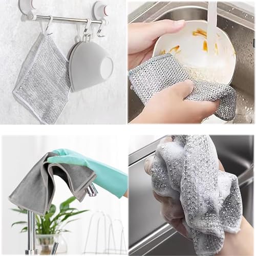 LPMXYW - قطع غسيل اطباق سلكية متعددة الاغراض من ال بي ام اكس واي دبليو قابلة لاعادة الاستخدام للمطبخ والاطباق للاستخدام الرطب والجاف 10 سلك معدني