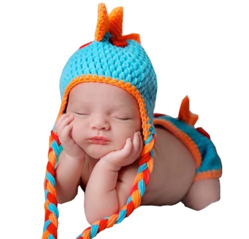 Lppgrace - طقم ملابس كروشيه على شكل ديناصور مصنوع يدويا لجلسات التصوير للاولاد حديثي الولادة من لاب جريس، متعدد الألوان