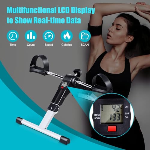 LRK - دراجة تمارين بدواسة قابلة للطي من ال ار كيه، دراجة تمارين صغيرة مقاومة قابلة للتعديل خفيفة الوزن للاستخدام الداخلي مع شاشة عرض الكترونية للذراعين والساقين (اسود مع شاشة LCD)