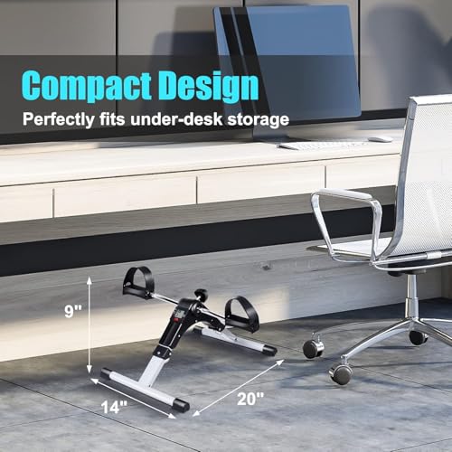 - 【تصميم قابل للطي والحمل】 تم تصميم دواسة التمرين القابلة للطي تحت المكتب لتوفير طريقة مريحة للتمرين في أي وقت وفي أي مكان. حجمها الصغير وتصميمها القابل للطي يجعلها سهلة التخزين والنقل، مما يسمح لك بالبقاء نشطًا حتى في المساحات الصغيرة أو أثناء التنقل.