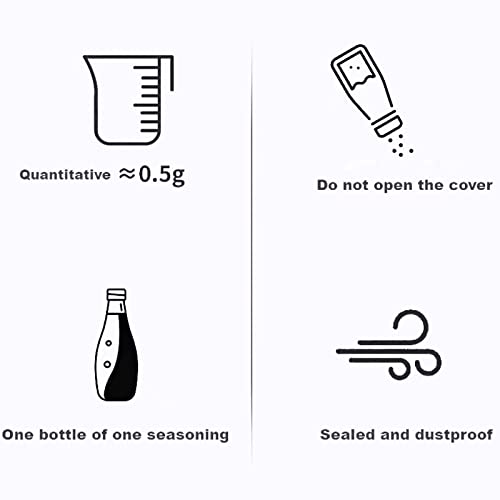 - 2. مع التحكم الدقيق في كل مرة، يمكن إضافة التوابل بسهولة بفضل فم الزجاجة الكبير، سعة 100 مل كما يمكن لكل زجاجة استيعاب حوالي 400 جرامًا من التوابل.