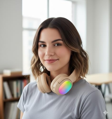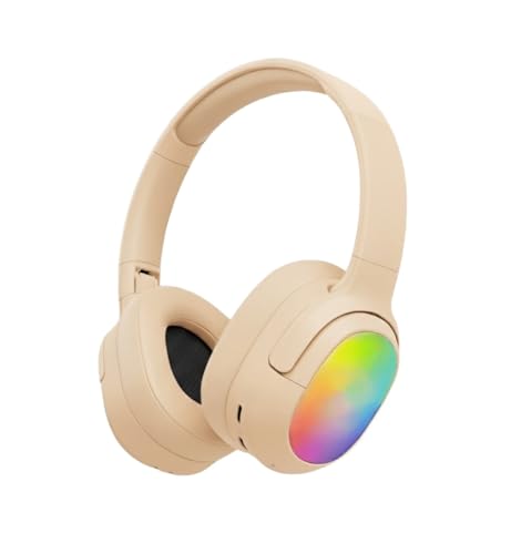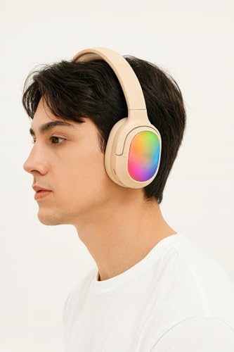 Generic - سماعة رأس استريو لاسلكية - صوت احترافي مضبوط - تصميم فاخر مريح - مناسبة للموسيقى والألعاب والأفلام - اضاءه LED - موديل LS-257 (بيج)