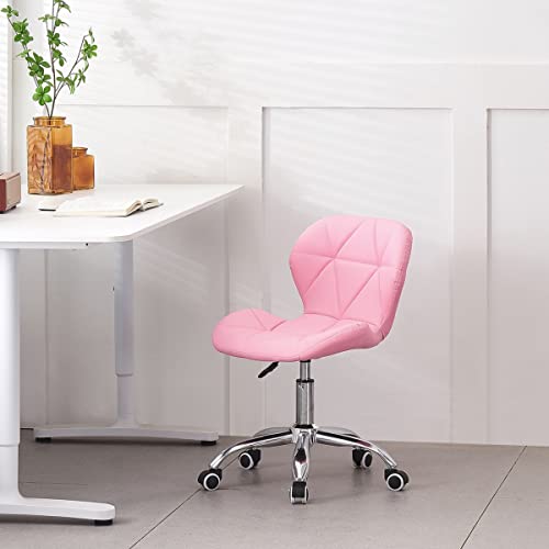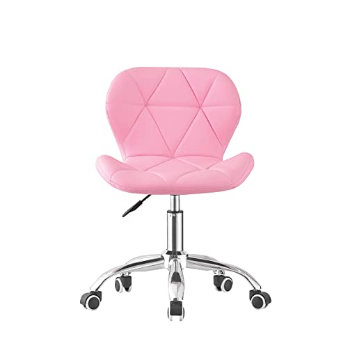 LSBIKE - كرسي مكتب دوار بارتفاع قابل للتعديل من ال اس بايك فانيتي جلد البولي يوريثين منزلي لغرفة النوم والدراسة كمبيوتر مع ارجل الكروم وعجلات دوارة بينك زهري