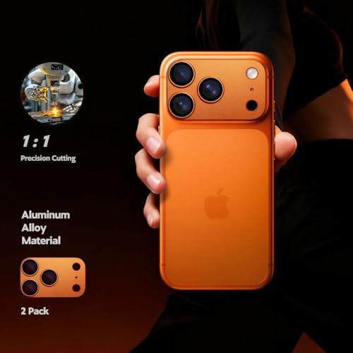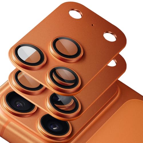 LSGAE - ال اس جيه ايه اي واقي عدسة الكاميرا لموبايل ايفون 17 برو ماكس (عبوة من قطعتين)، غطاء شاشة كاميرا من خليط معدني من الالومنيوم غير اللامع (برتقالي كوزميك، ايفون 17 برو ماكس)