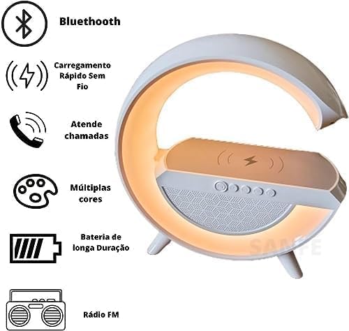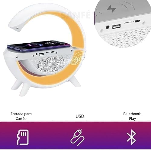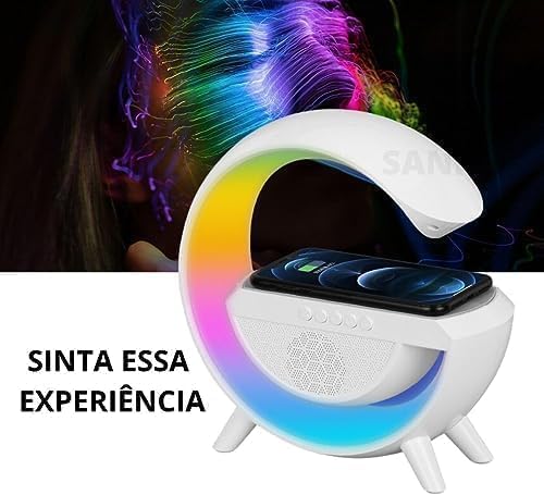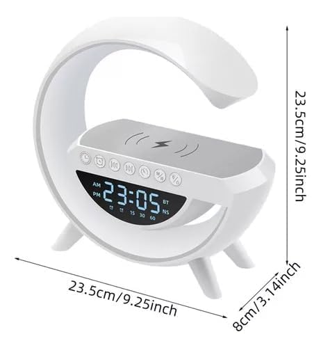 LSMI MARKET - مصباح طاولة بمكبر صوت بلوتوث ذكي بتقنية الفضاء اللوني ار جي بي من لسمي ماركيت، صندوق صوت وشاحن بلوتوث يعمل بالحث، شحن لاسلكي، ضوء ليلي محيطي