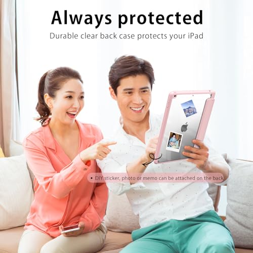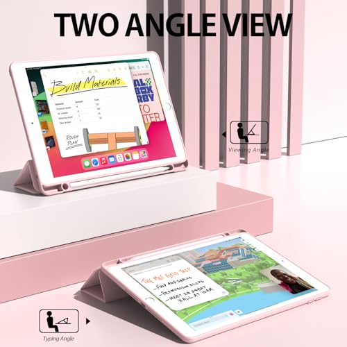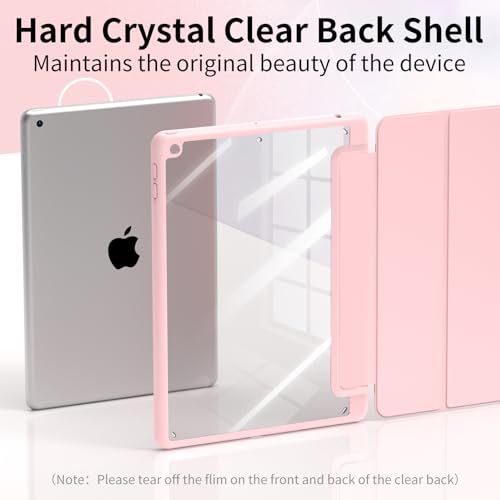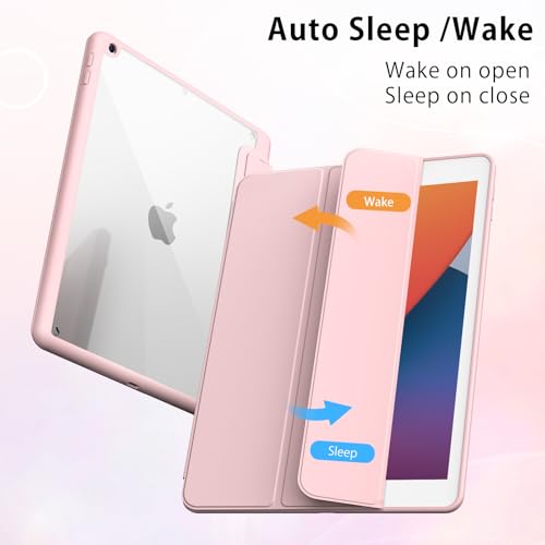 Lsmmpoba - جراب حماية لجهاز اي باد 10.2 بوصة الجيل التاسع/الثامن/السابع مع حامل قلم 2021/2020/2019، جراب خلفي شفاف بمسند ذكي لجهاز اي باد 10.2 بوصة بخاصية السكون/ الاستيقاظ التلقائي، من ال اس ام ام بوبا (وردي)