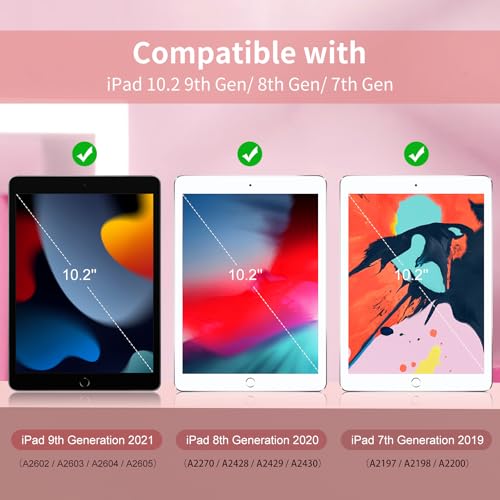 - [التوافق] مصمم لجهاز اي باد 10.2 بوصة الجيل التاسع/الثامن/السابع (2021/2020/2019). يناسب رقم موديلات اي باد: A2602 /A2603 /A2604 /A2605 /A2197 /A2198 /A2200 /A2270 /A2428/A2429 /A2430. يرجى التحقق من الجزء السفلي الخلفي لجهاز اي باد الخاص بك للعثور على رقم الموديل