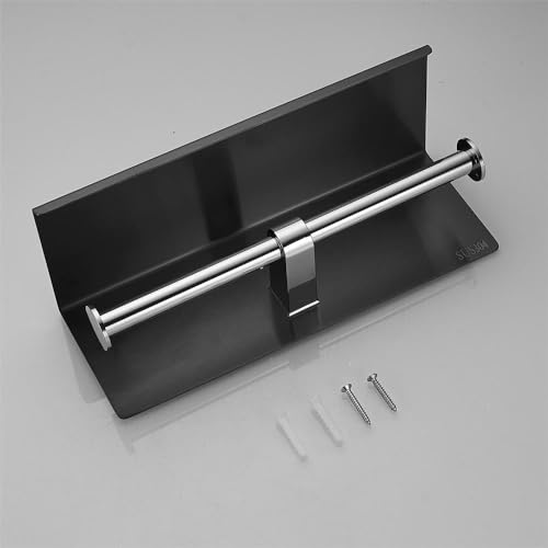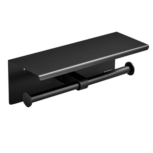 LSWYYP - حامل ورق تواليت مزدوج من ال اس دبليو واي واي بي، حامل مناديل التواليت من الفولاذ المقاوم للصدأ مع رف، حامل ورق التواليت للتثبيت على الحائط لرف الموبايل في الحمام، أسود ماتر