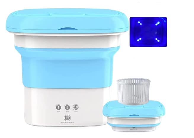 Luabby Smart - غسالة ملابس اوتوماتيك محمولة صغيرة قابلة للطي على شكل جردل من لوابي سمارت (لون ازرق)، تحميل علوي، 1.0 كيلوجرام