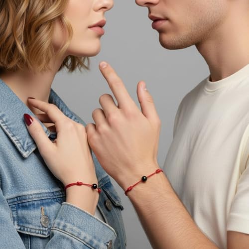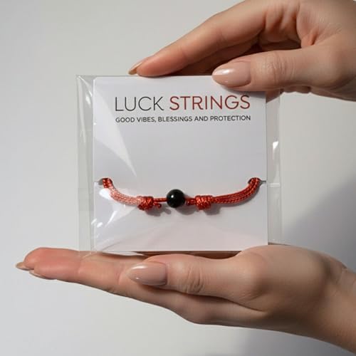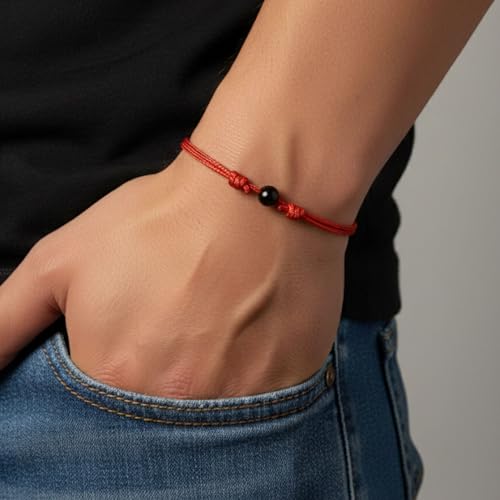 Luck Strings - لاك سترينغز سوار خيط احمر تورمالين اسود - تميمة كابالا مصنوعة يدويا لحماية العين الشريرة مع حبل قابل للتعديل | هدية مجوهرات روحية للجنسين للرجال والنساء