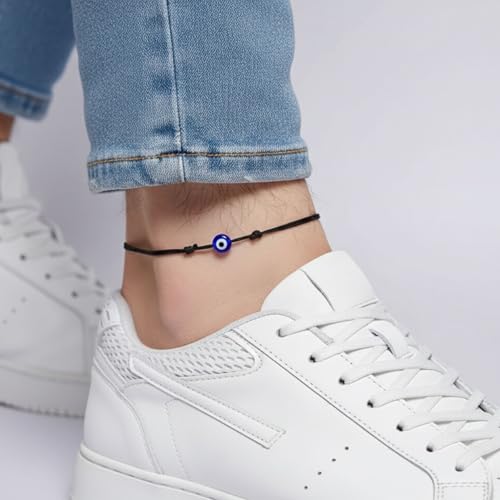 Luck Strings - لاك سترينغز سوار خلخال بتصميم عين الحسد للنساء والرجال والمراهقين والبنات والاولاد اساور كاحل مقاومة للماء وقابلة للتعديل مجوهرات بسيطة للجنسين طول 8 انش كحد ادنى - 16 اقصى بدون احجار