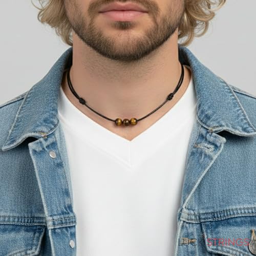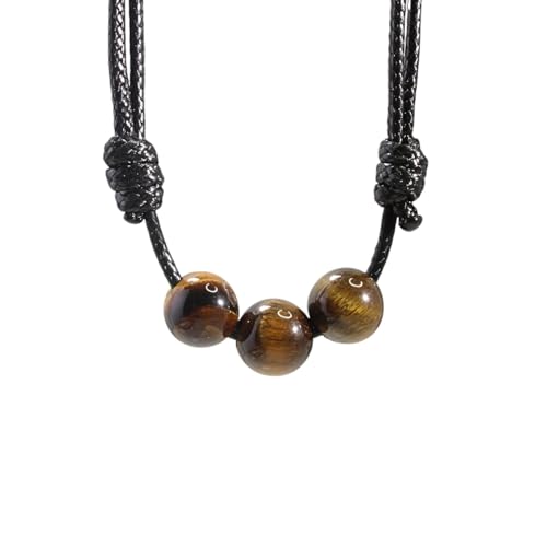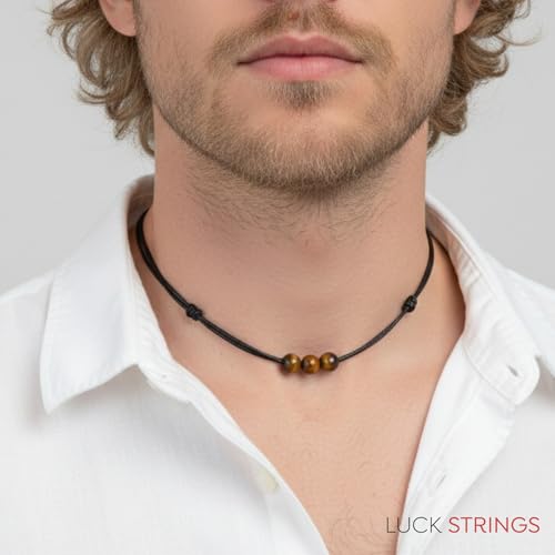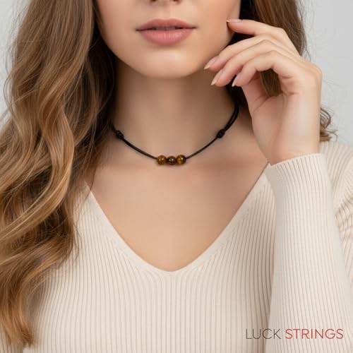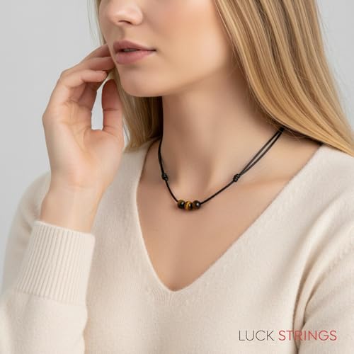 Luck Strings - لاك سترينغز عقد بقلادة خرز احجار كريمة عين النمر مع حبل نايلون شمعي قابل للتعديل - قلادة للجنسين قابلة تفتح من 16 انش الى 32