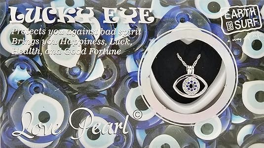 Generic - قلادة على شكل عين الحظ مع سلسلة 16 انش من لوف ويش بيرل