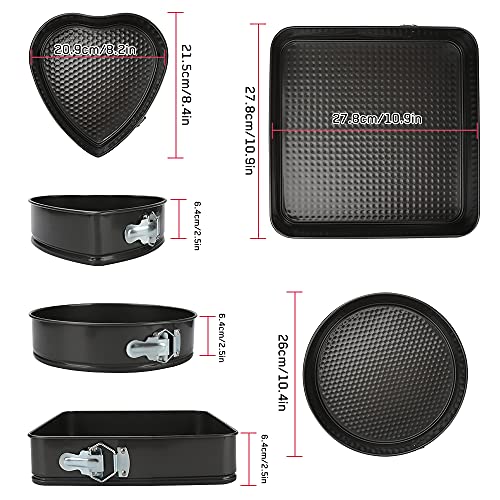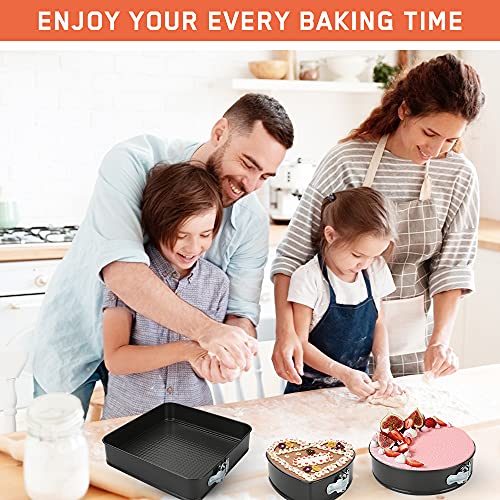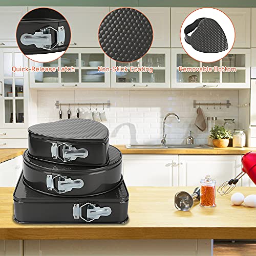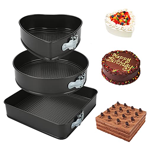 Luckits - مجموعة صواني الكيك سبرينج فورم من لوكيتس، صواني غير لاصقة مع قاعدة قابلة للفصل، صينية كيك مانعة للتسرب للخبازين ومحبي الخبز، مجموعة من 3 صواني 9 بوصة على شكل قلب و10 بوصة دائرية و11 بوصة مربعة