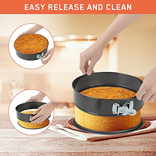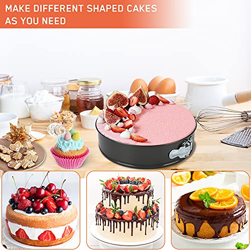 - 【صينية عالية الجودة】- مجموعة صواني الكيك سبرينغفورم لخبز التشيز كيك مصنوعة من الستيل الكربوني القوي والمتين والمقاوم للصدأ، وهو آمن وصحي ويتميز بقوة عالية، لا يتغير شكله ونقل الحرارة بسرعة، مما يوفر وقت الخبز، إنه الخيار الأفضل لصنع الكعك الجميل في مطابخ المطاعم والمخابز.